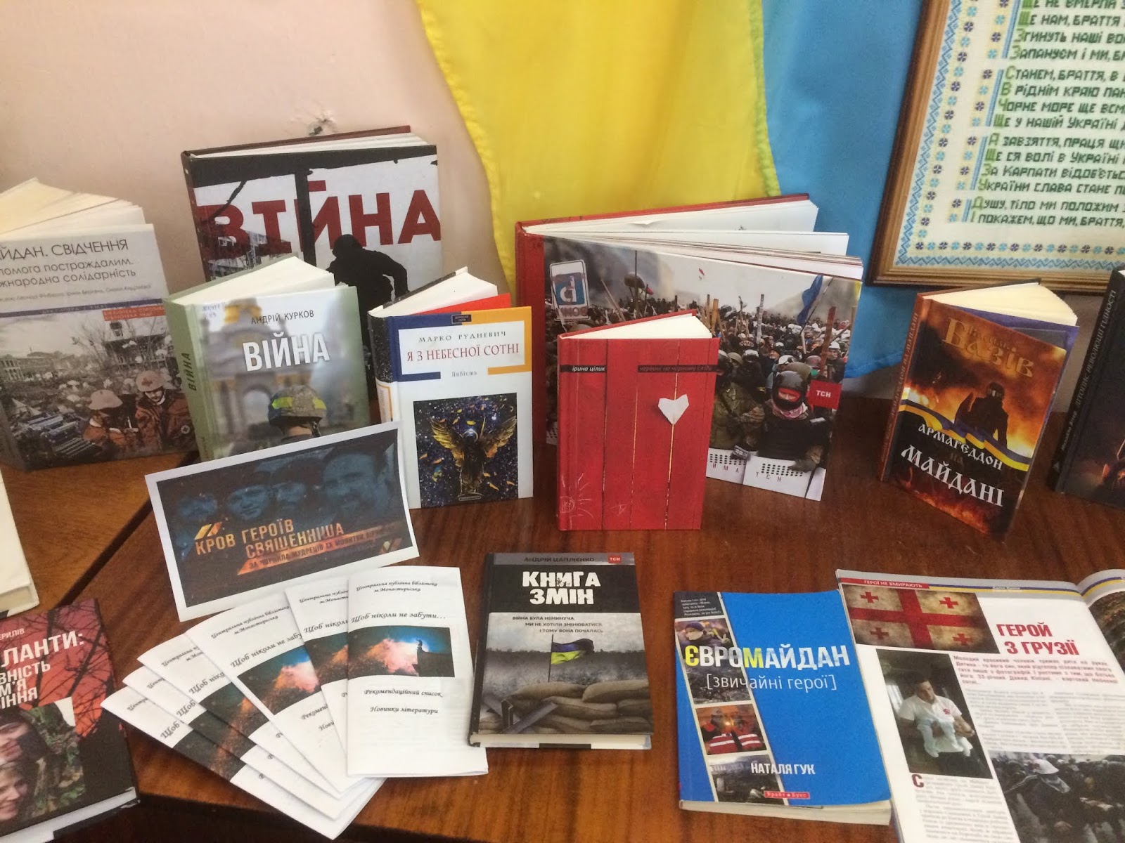 В читальному залі влаштовано книжкову виставку «У небо пішли молодими», і